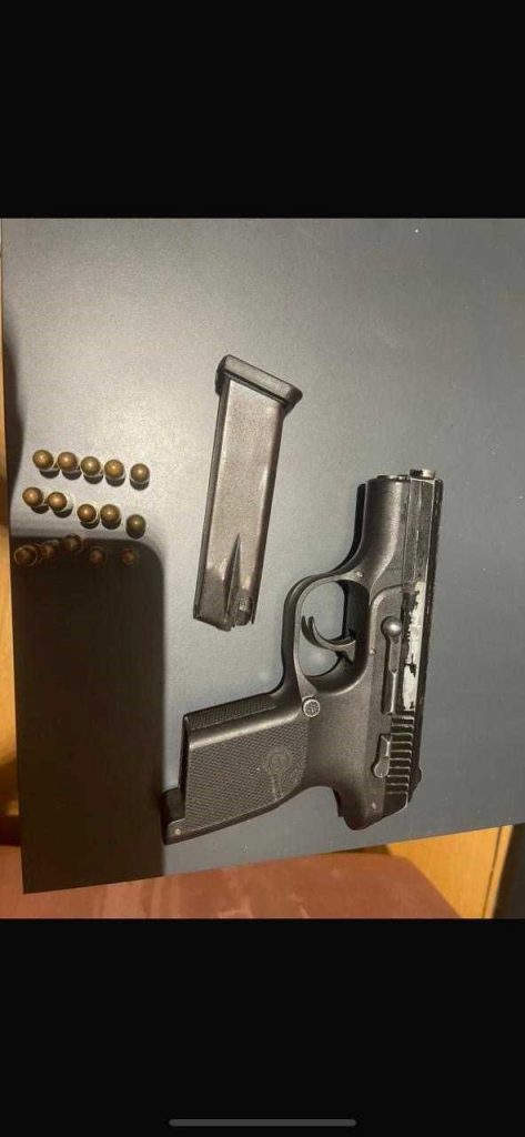 një armë zjarri me karikator dhe 15 fishekë,